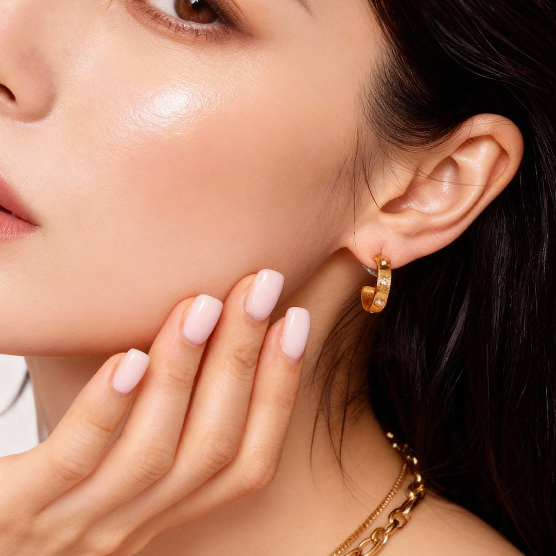 Wear them with a sleek bun or ponytail to highlight the sparkle and structure. Pairs beautifully with a gold bracelet or layered necklace.
