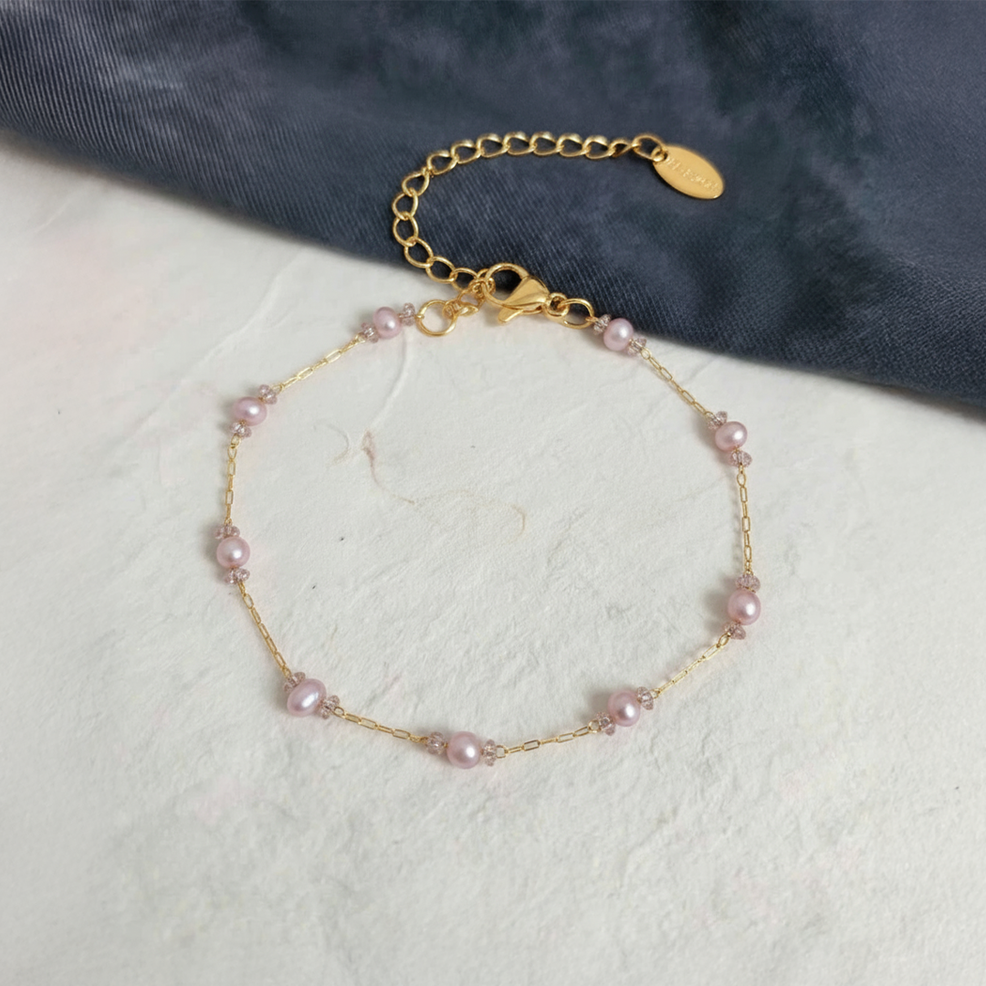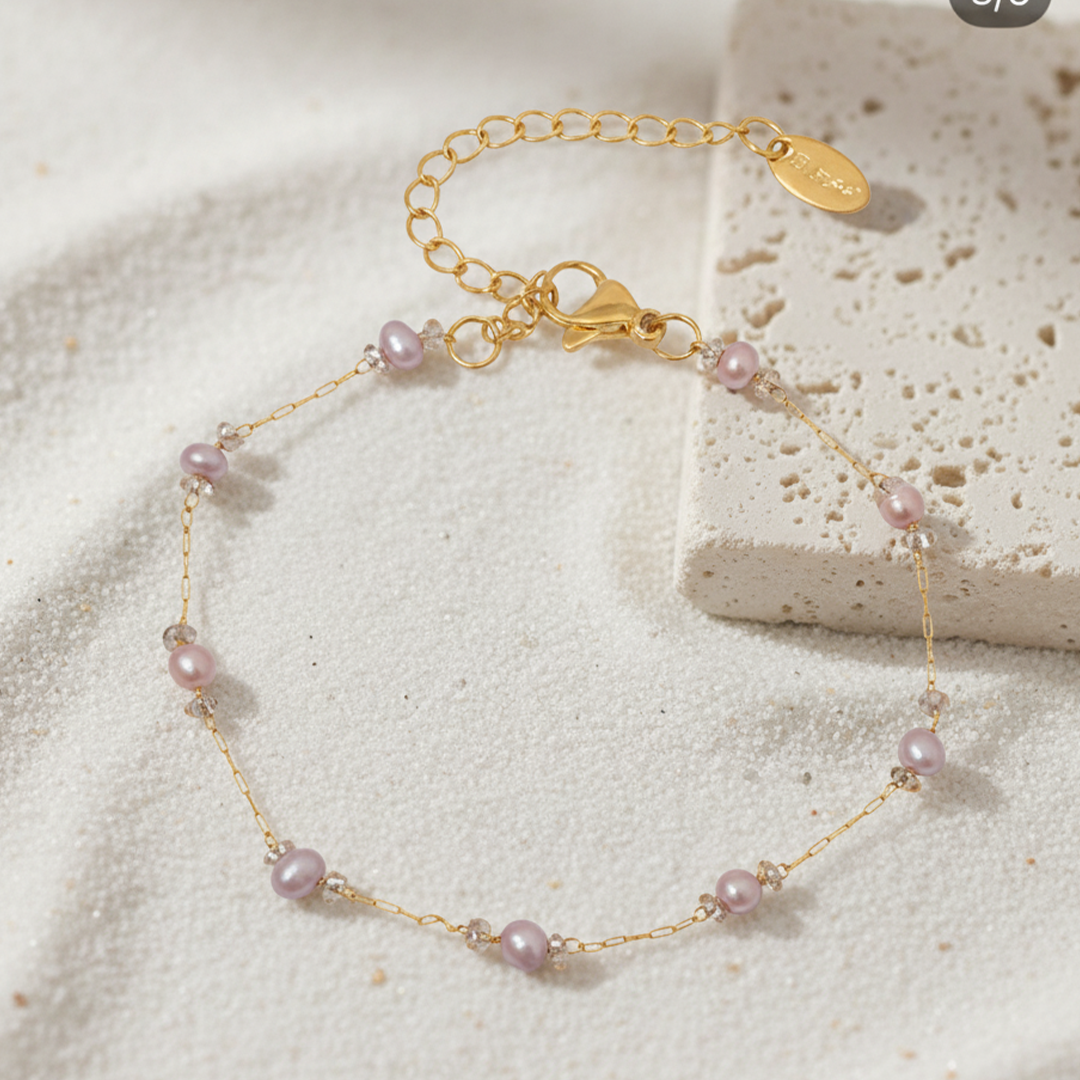 Pink Pearl Beaded Bracelet – Stainless Steel Dainty Jewelry